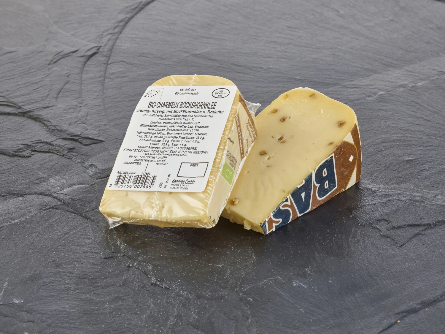 Lass dich vom Bastiaansen Bio Charmeux Bockshornklee verzaubern, einem laktosefreien Schnittkäse, der mit seiner besonders cremigen Textur und geschmeidigen Konsistenz überzeugt. Die einzigartige Kombination aus Rotkulturen und Wein verleiht der Rinde ein feines Aroma, während die Zugabe von Bockshornklee dem Ganzen eine exotische Note gibt. Perfekt für Käseliebhaber, die nach einem außergewöhnlichen Geschmackserlebnis suchen.