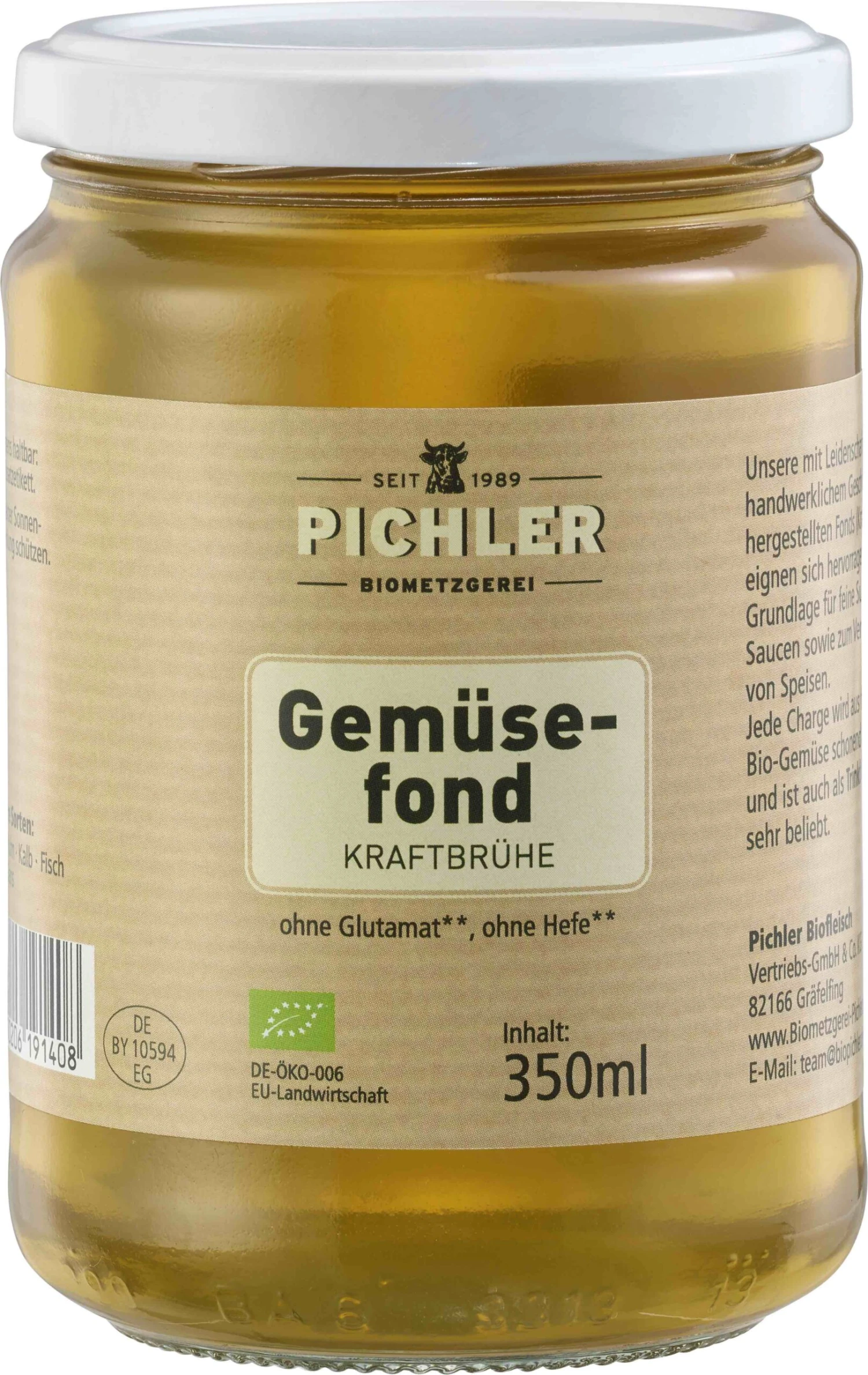 Tauche ein in die Welt der Aromen mit dem Biometzgerei Pichler Gemüsefond. Dieser hochwertige Gemüsefond, abgefüllt in einem praktischen 350 ml Glas, ist dein Geheimnis für geschmackvolle Suppen, Saucen und Risottos. Hergestellt von Pichler Biofleisch, garantiert er Qualität für deine Küche. Ideal für die kreative Küche, bringt er Tiefe und Vollmundigkeit in jedes Gericht.