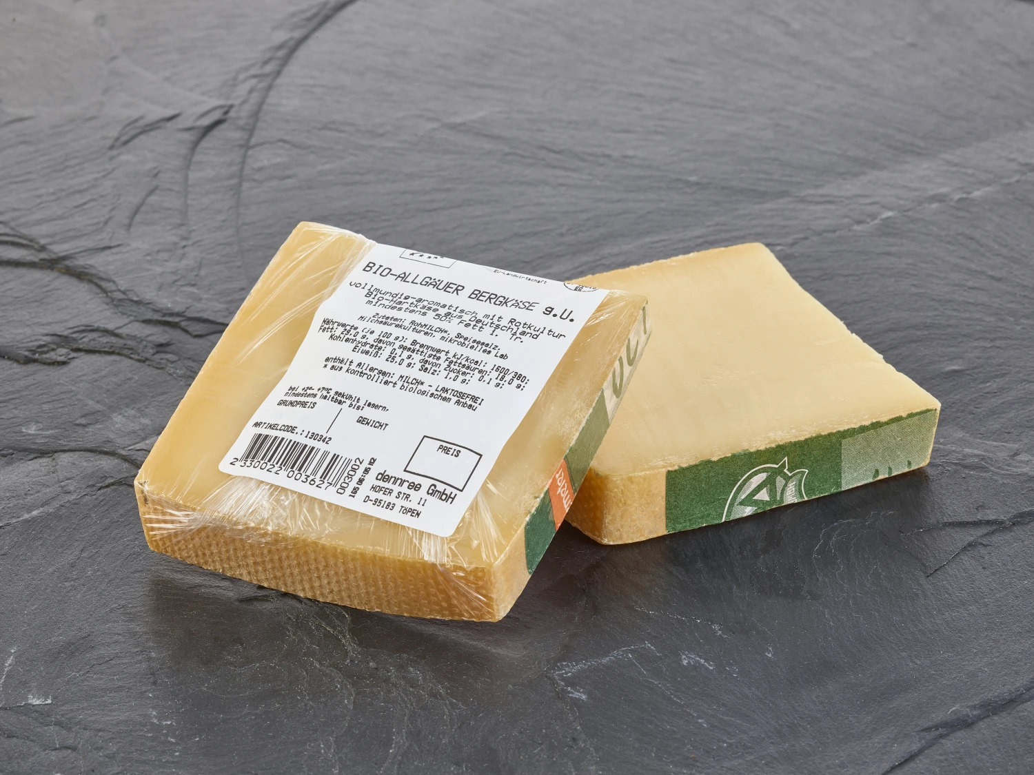 Begeistere deine Sinne mit dem ÖMA Heumilch Bergkäse, einem laktosefreien Hartkäse, der direkt aus dem malerischen Allgäu stammt. Seine würzige Note und der unvergleichlich feine Schmelz machen ihn zu einem echten Genusserlebnis. Hergestellt in erstklassiger Demeter-Qualität, verspricht dieser Käse ein authentisches Geschmackserlebnis, das Tradition und Qualität in jedem Bissen vereint. Ideal, um deinen Gerichten eine besondere Note zu verleihen oder als Star auf jeder Käseplatte.