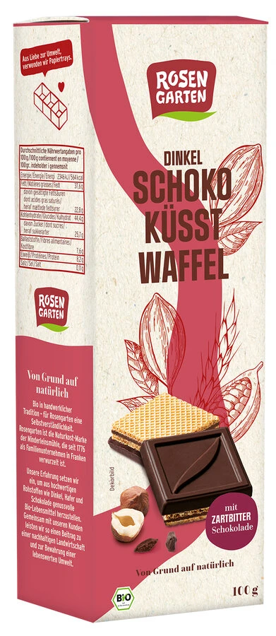 Entdecke die sinnliche Verschmelzung von knackiger Zartbitterschokolade und zarter Nougatcreme in den Rosengarten Schoko küsst Waffel Zartbitter. Diese Köstlichkeit, perfekt für den Genussmoment zum Kaffee oder als süße Verführung für zwischendurch, bietet ein unvergleichliches Geschmackserlebnis. Die edle Zartbitterschokolade krönt jede Waffel und macht sie zu einem Highlight für alle Schokoladenliebhaber.