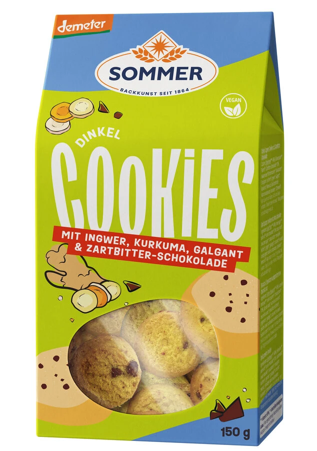 Entdecke die kraftvolle Harmonie von Ingwer und Schokolade in den Sommer & Co. Demeter Dinkel 3 Ingwer Cookies. Diese veganen Köstlichkeiten vereinen die pikante Würze von Ingwer, Kurkuma und Galgant mit der Süße von Zartbitterschokolade, alles auf einer Basis aus hochwertigem Dinkelmehl und regionalem Rübenzucker. Aus unserem frischen Sortiment stammend, bieten sie ein einzigartiges Geschmackserlebnis, das deine Sinne belebt und verwöhnt. Ideal für alle, die nach einem besonderen Snack suchen.