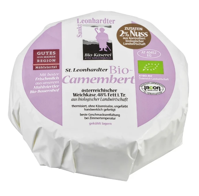 St. Leonhardter Biokäserei Camembert Mit Nuß, Ca. 180 Gr , Mind. 48%