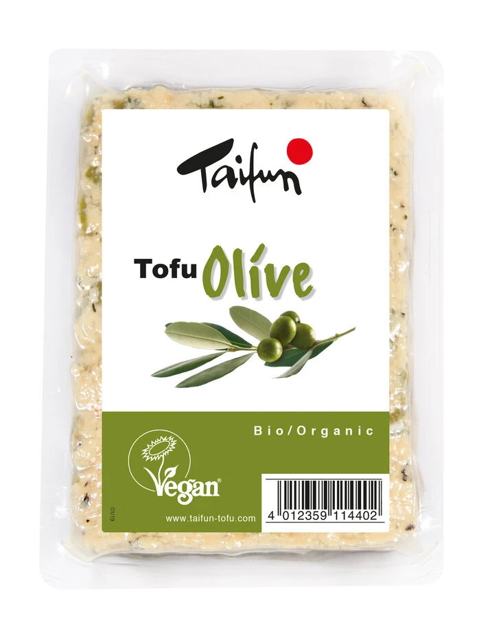 Taifun Tofu Olive, 200 gr Packung – Hervorragend geeignet für die kalte Küche, z.B. zu griechischem Salat oder italienischen Vorspeisen.