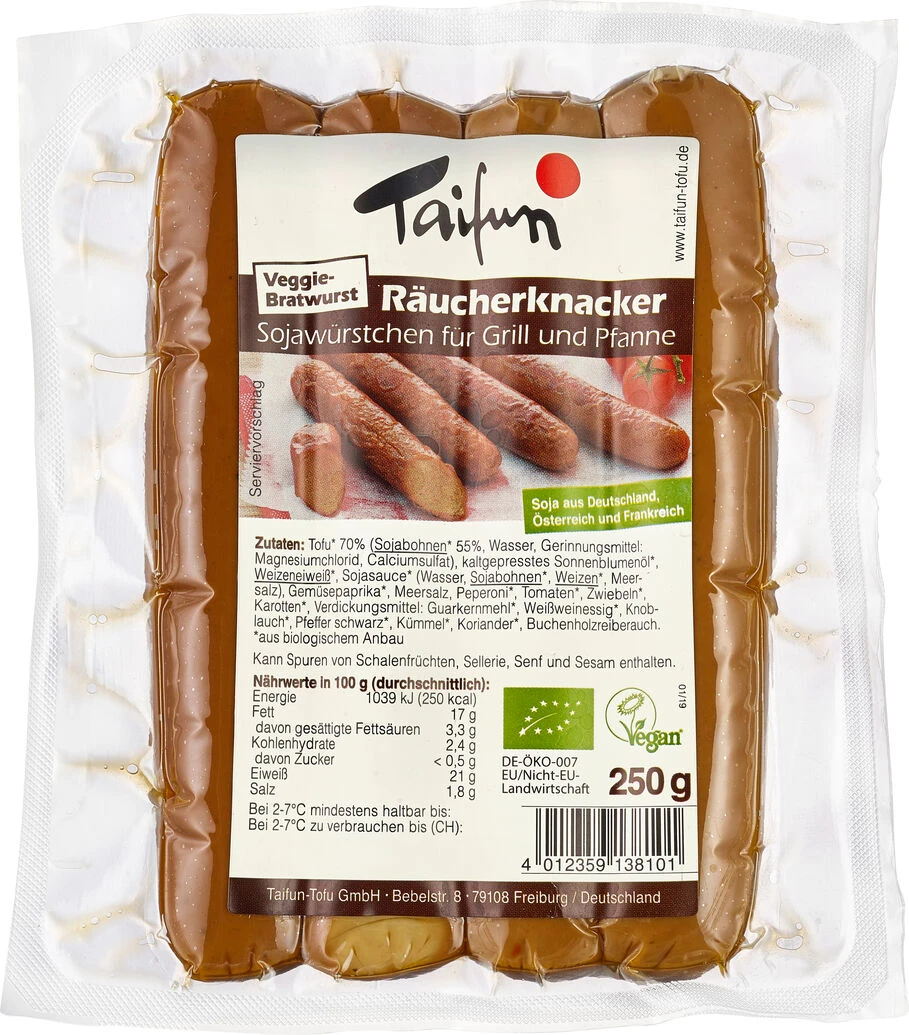 Taifun Veggie-Bratwurst Räucherknacker, 250 Gr Pac