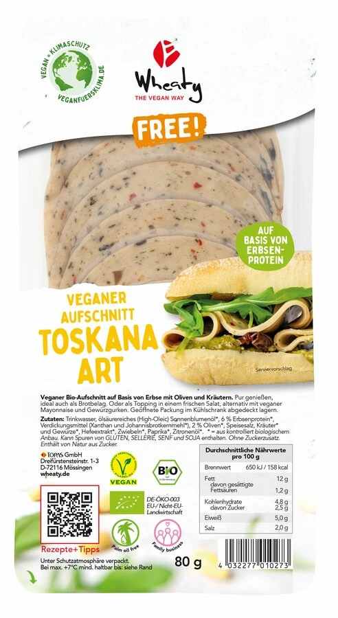 Wheaty Veganer Aufschnitt Toskana Art, 80 G Stück