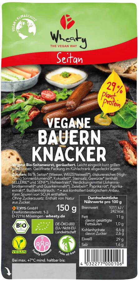 Wheaty Wheaty Vegane Bauern-Knacker, 150 Gr Packun