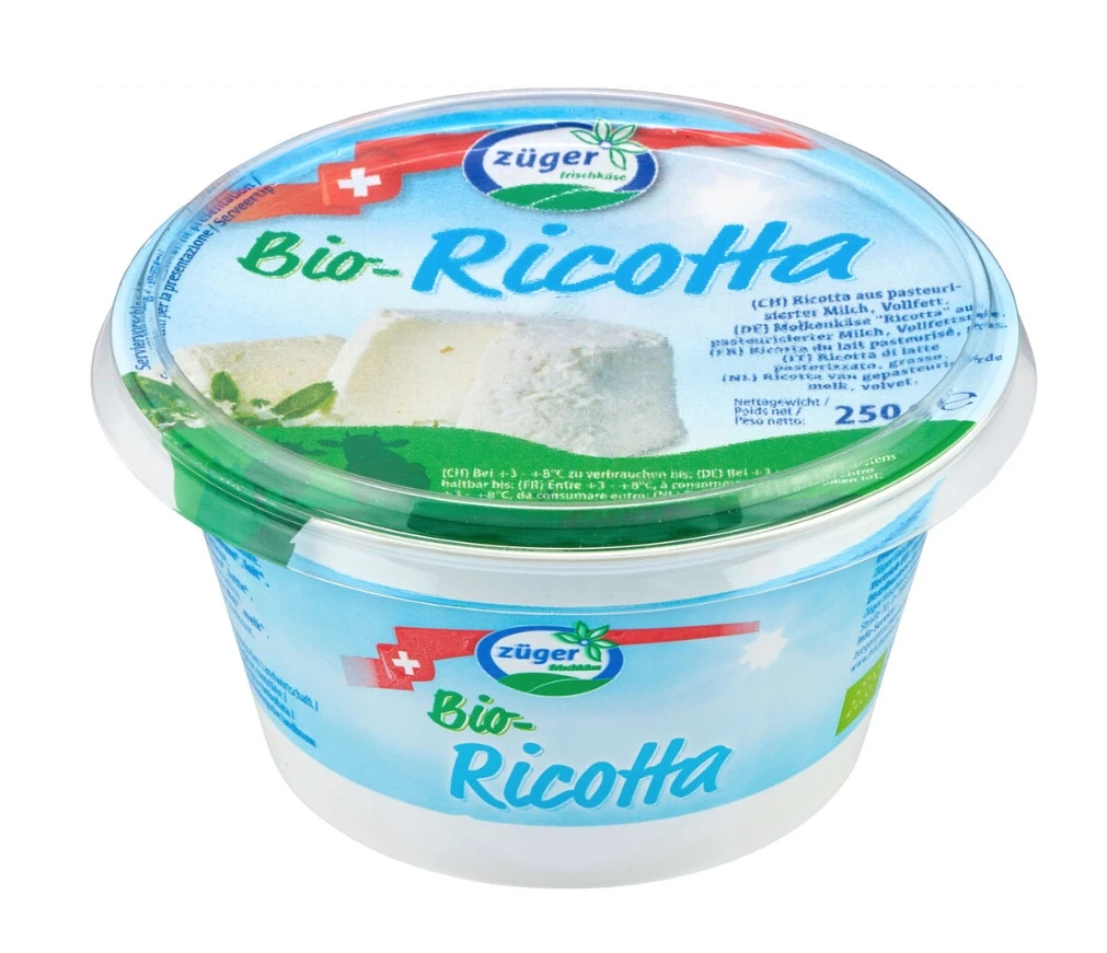 Gönn dir ein kulinarisches Highlight mit dem Züger Ricotta aus der Schweiz. Dieser Bio-Frischkäse besticht durch seine unvergleichliche Cremigkeit und feine Textur, die sowohl in süßen als auch in herzhaften Kreationen für Begeisterung sorgt. Perfekt für alle, die Wert auf Qualität und Geschmack legen. Der Züger Ricotta ist ein echtes Multitalent in der Küche und bringt ein Stück Schweizer Käsekunst auf deinen Tisch.